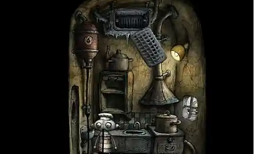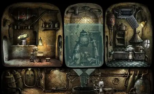 第一个挑战在于获取第一颗灯泡的过程需要巧妙的触发。玩家进入电梯场景后,需要注意到靠墙的巨大植物并与之互动,从花盆中取出泥土撒在地上。这个动作会触发清洁机器人出现清理,玩家必须迅速抓住并摇晃它才能获得灯泡,这一连串操作要求玩家对环境细节有敏锐的观察力并把握正确的互动时机。